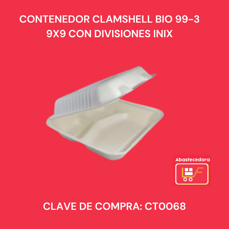 Contenedor Clamshell Bio 99-3 9×9 con Divisiones Inix
